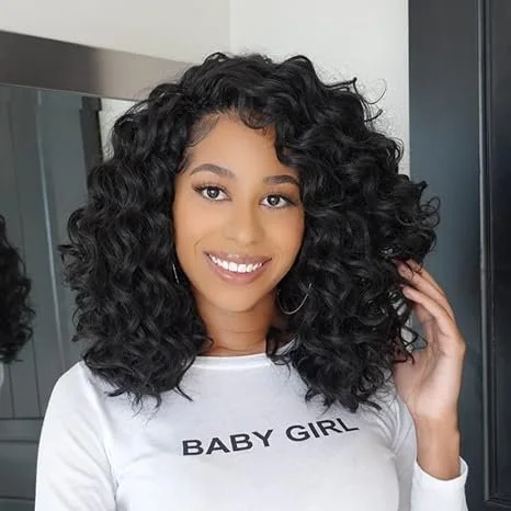 ToyoTree Ocean Wave Crochet Hair - 14 Inch 8 Packs Natural Black Mid-Length Curly Deep Wave Crochet Hair, Synthetic Ocean Wave Braiding Hair Extensions (14 Inch,1B-8P)