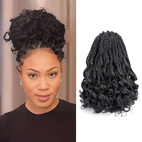 Goddess Box Braids Crochet Hair 1B - 8 Inch Pre Looped Boho Crochet Braids with Curly Ends, 8 Packs Crochet Hair for Black Women Boho 3X Synthetic Braiding Hair Extensions