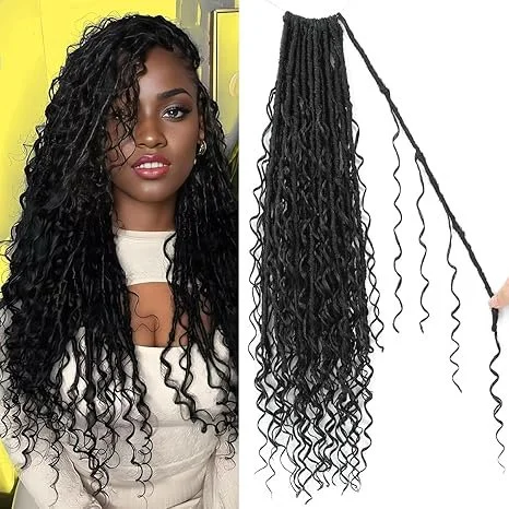 Boho Faux Locs Crochet Hair 18 Inch Goddess Locs 8 Packs Boho Soft Locs Crochet Hair with Curly Ends Pre-looped Long Bohemian River Locs for Black Women (1B, 18 Inch(Pack of 8))